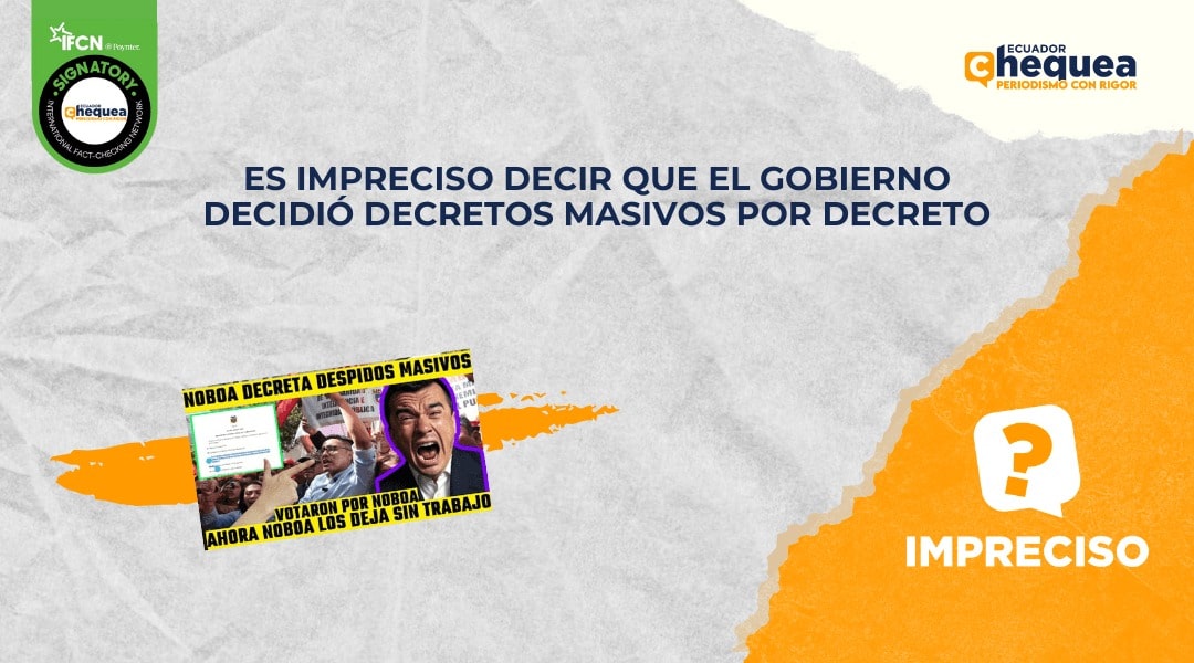 Por ejemplo, en Facebook, una publicación asegura que, mediante un Decreto, el Gobierno de Daniel Noboa ordena despidos masivos. Se califica este contenido como impreciso.