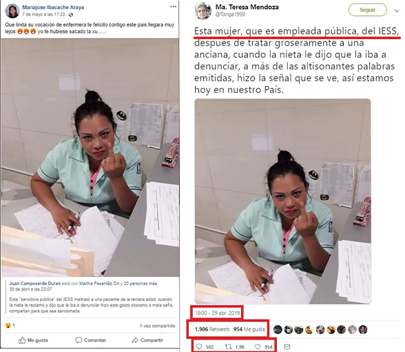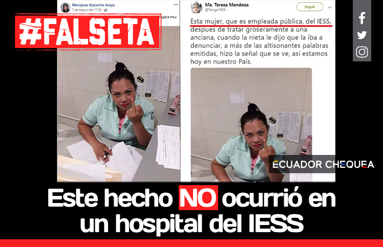 Desde el 29 de abril de 2019 circula información engañosa en redes sociales en torno a una supuesta agresión de una funcionaria del Instituto Ecuatoriano de la Seguridad Social (IESS) en contra de una anciana. El mensaje fue publicado a través de Twitter y Facebook: