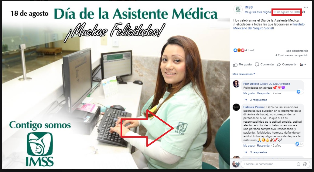 Otra evidencia de que no ocurrió en Ecuador es que los asistentes médicos del IMSS utilizan uniformes distintos a los del IEES. En una publicación hecha en la cuenta oficial de Facebook del Instituto Méxicano de Seguridad Social se muestra una foto donde la institución muestra el uniforme de estos profesionales de la salud, idéntico al de la asistente médica denunciada.