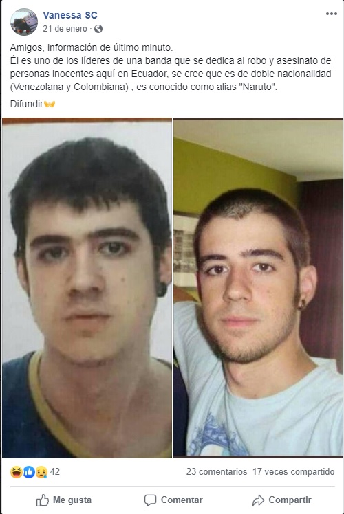 La segunda fotografía corresponde a Luis Arturo Villar Sudek nacido en Puebla de Zaragoza, México, más conocido como «Luisito» por su programa de Youtube ‘Luisito comunica’. La imagen en cuestión se usó en el pasado, para involucrarlo con la noticia de una mujer que acabó con su vida saltando de un puente junto a su hijo de cinco años en Colombia.