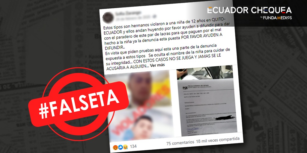 Esta información fue publicada de nuevo como si fuera actual por algunas cuentas personales de Facebook, incluso de personas que no residen en Ecuador. Sin embargo, la primera publicación se dio el 24 de febrero de 2020, y en esa cuenta personal, desde donde se originó la denuncia la actividad es actualmente casi nula, ya que sus últimas tres publicaciones fueron hechas en el año 2017.