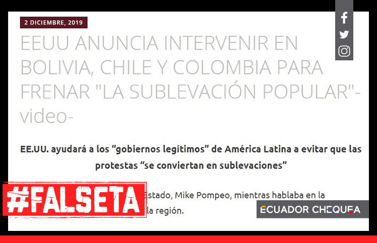 Al interior de la publicación se puede ver una serie de videos en que se recogen intervenciones del Secretario de Estado, Mike Pompeo. Sin embargo, en ninguno se afirma que intervendrán directamente a los países latinoamericanos ni se habla de «frenar la sublevación popular».