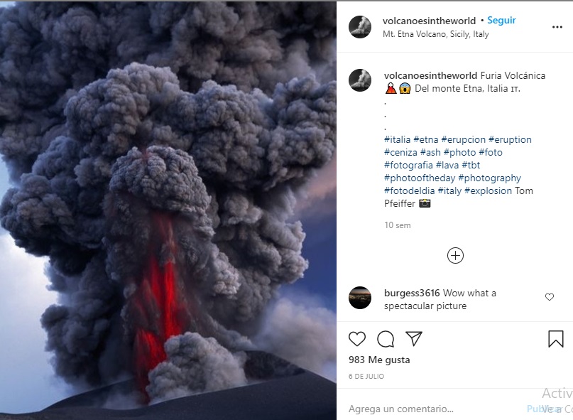 La fotografía fue publicada con anterioridad el 6 de julio de 2020 en la cuenta de Instagram @volcanoesintheworld. El usuario de esta red social aseguró que la imagen fue capturada en el Monte Etna en Italia.