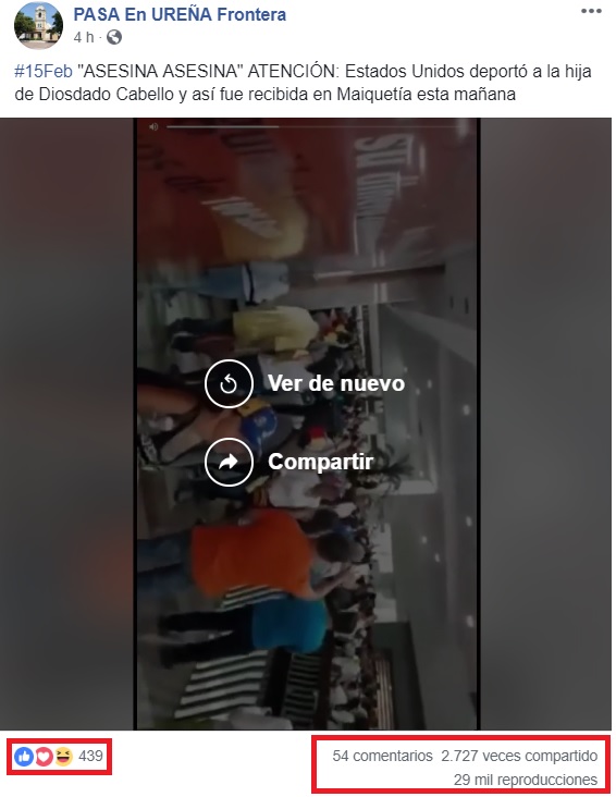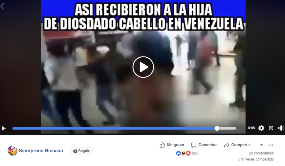 El video difundido en Facebook tuvo 439 interacciones, 54 comentarios, se compartió 2727 veces y reprodujo más de 29.000 ocasiones. Pero en realidad las imágenes se grabaron el 25 de junio de 2017 en el Centro Comercial Ciudad Caracas (CCCT) y no tiene relación con una deportación de la hija del chavista.