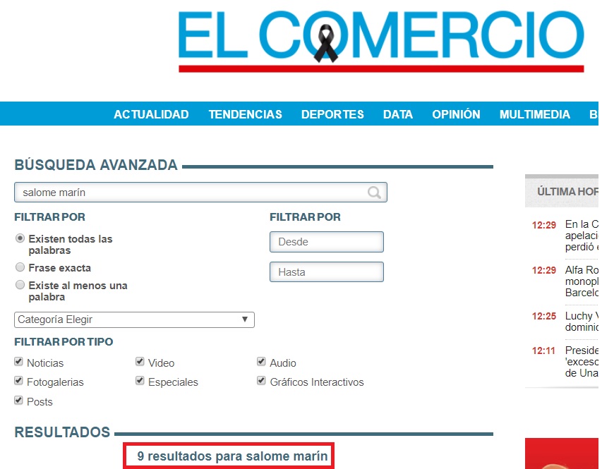 Estas son las 9 publicaciones realizadas por el medio en las que se nombra a Salomé Marín: