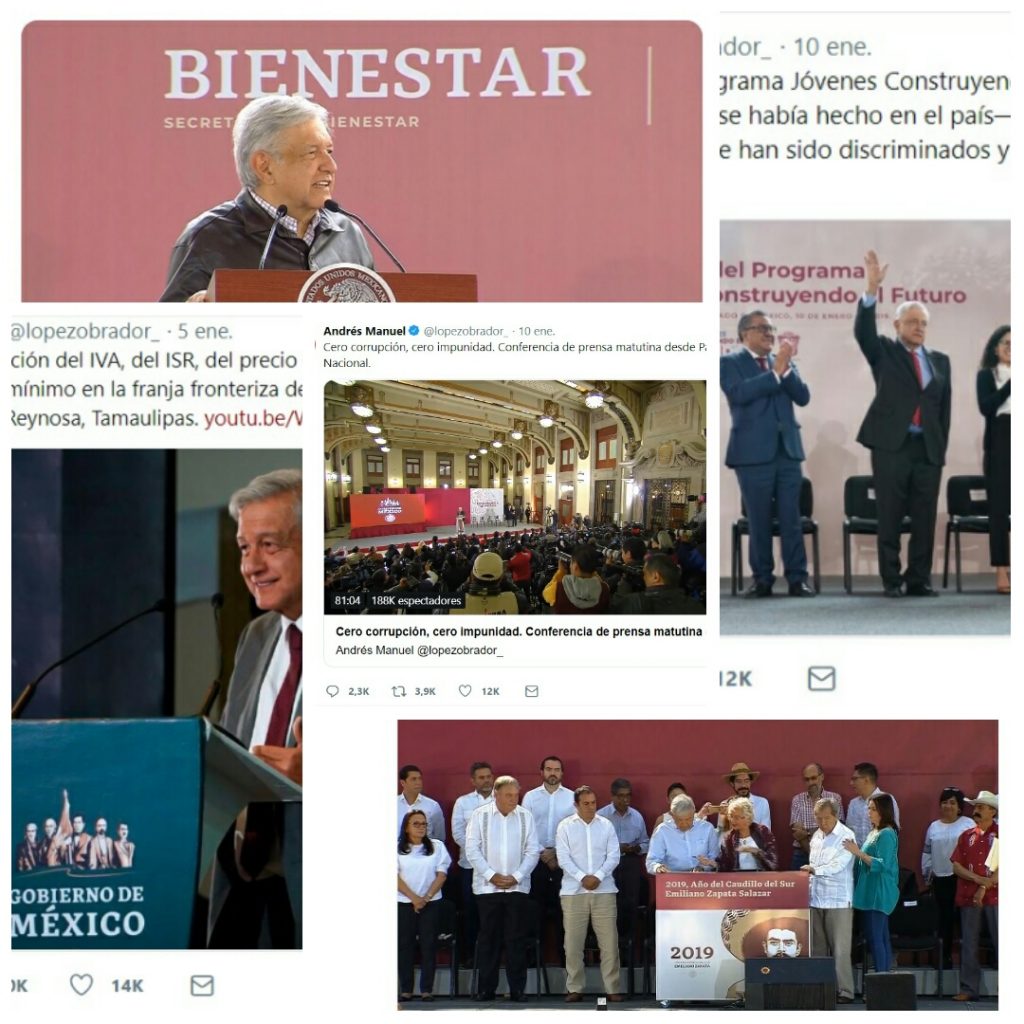 Además, en la cuenta de Twitter oficial del presidente mexicano se puede identificar que la iconografía empleada en sus espacios mediáticos, tanto en el Palacio Nacional como en otros escenarios, no guarda relación con la que utilizó Chávez en su programa Aló, Presidente.