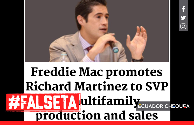 El director de Relaciones Públicas de Freddie Mac (empresa con sede en el estado de Virginia), Michael Morosi, confirmó a Ecuador Chequea que su vicepresidente Richard C. Martínez es un trabajador con «tres décadas en el negocio de las inmobiliarias». Morosi negó que el Ministro ecuatoriano formará parte del staff de trabajadores.