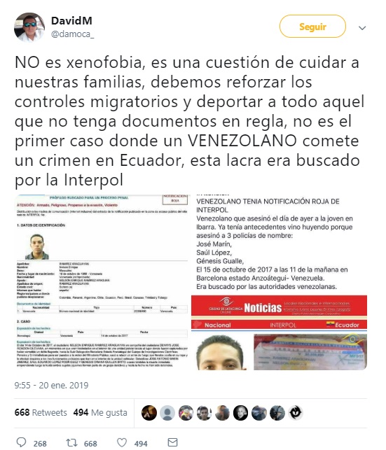 La página de la Interpol, en su sección de personas buscadas, no registra ninguna con los nombres Nelson Enrique Ramírez Araguayan. Si se introduce el criterio de búsqueda por nacionalidad, la web arroja 11 resultados: ninguno corresponde al citado anteriormente. En la lista tampoco aparece el nombre de Yordy Rafael L. G.