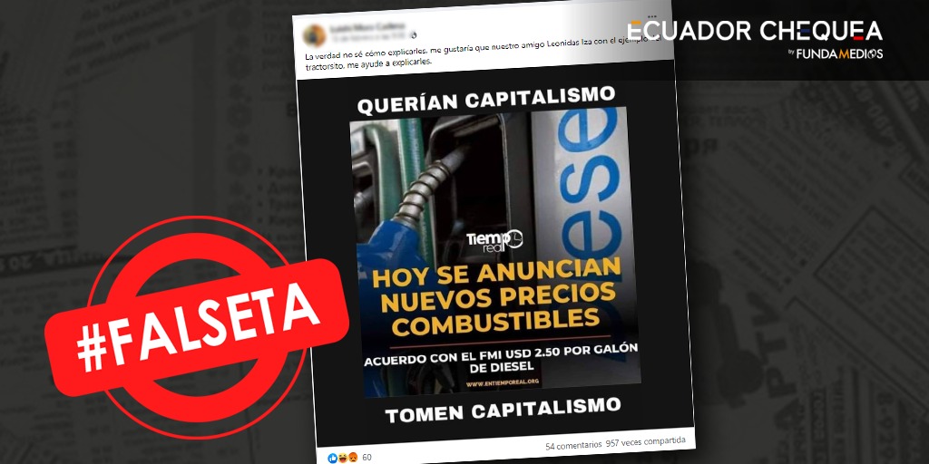 Desde el 15 de febrero, en cuentas personales de Facebook circulan publicaciones que aseguran que se anunciarán los nuevos precios de los combustibles y se atribuye esta medida al acuerdo que Ecuador mantiene con el Fondo Monetario Internacional (FMI). La información es falsa.