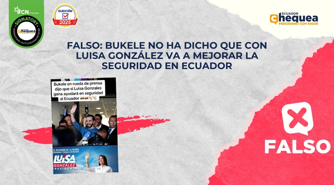 La coyuntura tiene a los desinformadores haciendo de las suyas y han generado todo tipo de publicaciones. En Tiktok, por ejemplo, un video asegura que el presidente de El Salvador, Nayib Bukele, habría dicho que si gana Luisa González, él ayudará en temas de seguridad a Ecuador. Se califica este contenido como falso. Bukele no se ha referido a las elecciones presidenciales. No hay registros de que el Primer mandatario salvadoreño se haya referido a González o sobre una supuesta ayuda al país.