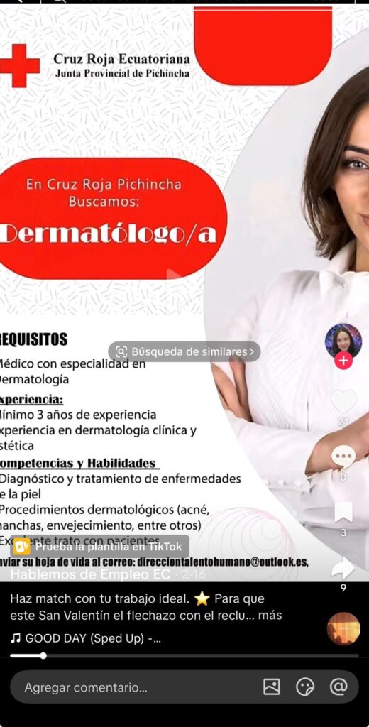 Lo que afirma: Que la Cruz Roja Ecuatoriana está ofreciendo vacantes laborales con contratación rápida mediante un documento institucional difundido en redes sociales.