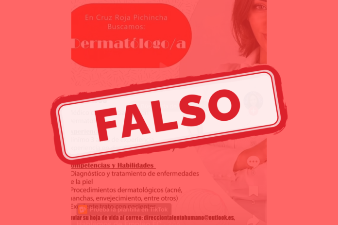 La supuesta oferta de “contrataciones inmediatas” atribuida a la Cruz Roja Ecuatoriana es falsa.