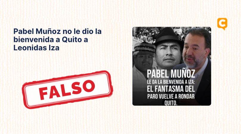 Circula en redes sociales (especialmente X y TikTok) una imagen que imita el formato de diario Extra y afirma que Pabel Muñoz “da la bienvenida” a Leonidas Iza. La pieza incluye la frase “El fantasma del paro vuelve a rondar Quito” y muestra fotos de Muñoz, Iza y Marlon Vargas, presidente de la Conaie.