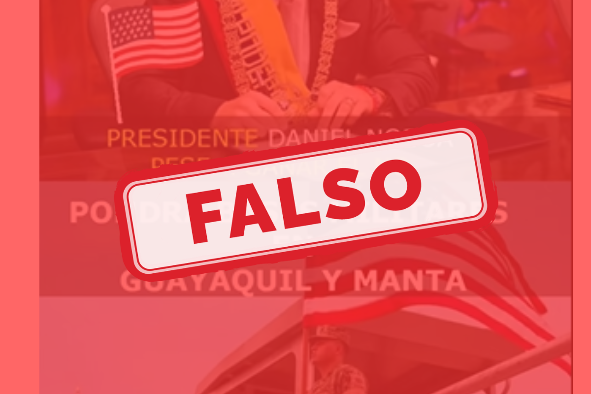 El contenido viral sostiene que el presidente, Daniel Noboa ha decidido establecer dos bases militares permanentes en Guayaquil y Manta. No presenta documentos, declaraciones oficiales ni fuentes primarias que respalden la afirmación.