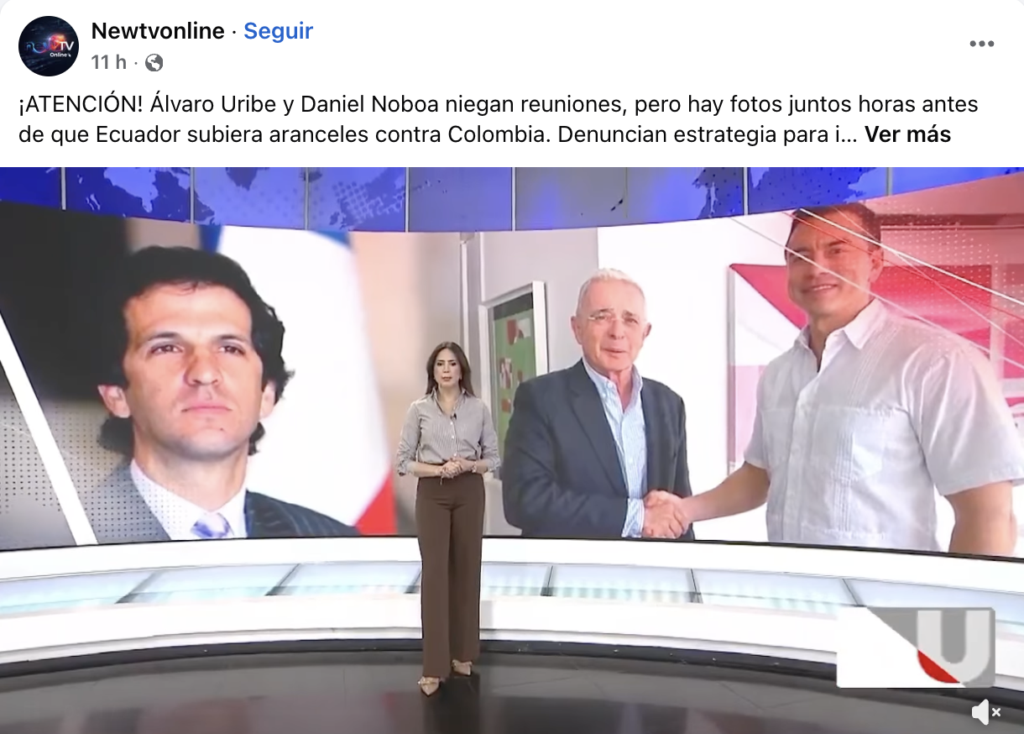 - Qué verificamos: Una publicación que afirma que Álvaro Uribe y Daniel Noboa “niegan reuniones”, pero existen fotos juntos “horas antes” de que Ecuador subiera aranceles contra Colombia.