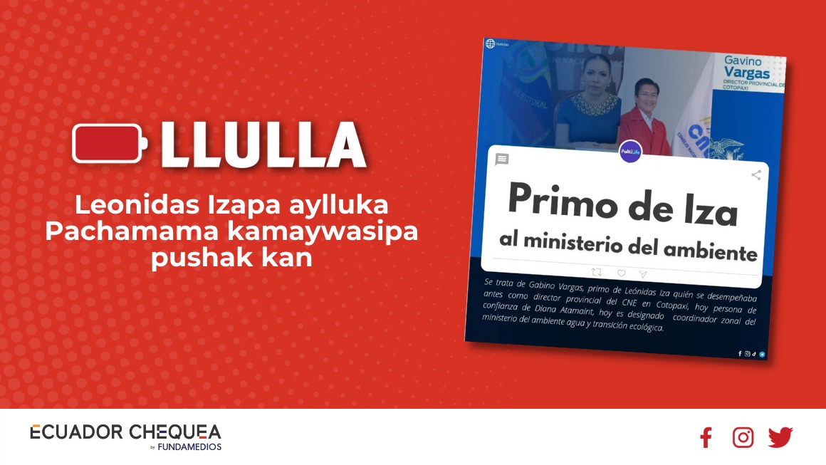 Leonisdas Izapa ayllu nishkaka mana shina kanchu nirka Iza “redes socialespi shina ninakun wakllichinkapak”. Shinallatak, Mamallaktapa pushakta huchachirka llullakunata hapikpi shina runa tantanakuykunata llakichinkapak.