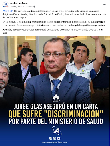 Por otro lado, las entidades a las que Glas hace alusión en su carta todavía no se han pronunciado respecto a la denuncia del exvicepresidente.