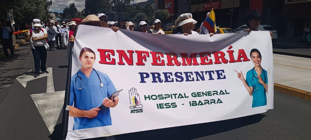 Marianita Narváez, representante de los gremios de enfermeros, cuestiona a la Asamblea por haber mezclado en un proyecto de Ley destinado a evitar la corrupción en la contracción pública, una normativa que igual reforma leyes sobre menores de edad, sobre servicio público, sobre tránsito, sobre la Contraloría, entre mucha otras. “Señor Noboa, estamos dispuestos al diálogo, esto no tiene bandera política”, dijo la dirigente.