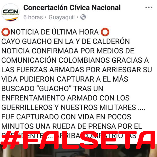 En redes sociales circula información «de última hora» sobre la supuesta captura de Guacho, jefe de la disidencia de las FARC, Oliver Sinisterra. Ese dato es falso.