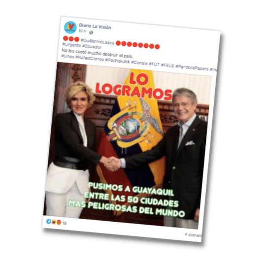 Chay llamkayruraypika mana Venezuelata churanchu, llakikuna mana tiyakpi mana kanchu, shuk shinami rikunakun. 50 kitikunamantaka, chawpi kitikunaka ashtawan 100 waranka runakunamanta 48,08 wañuchishkakuna tiyakpi kan. Facebook rikchata llukchishkapika Lasso shinallatak Viteriwan makita kukushpami llukchin.