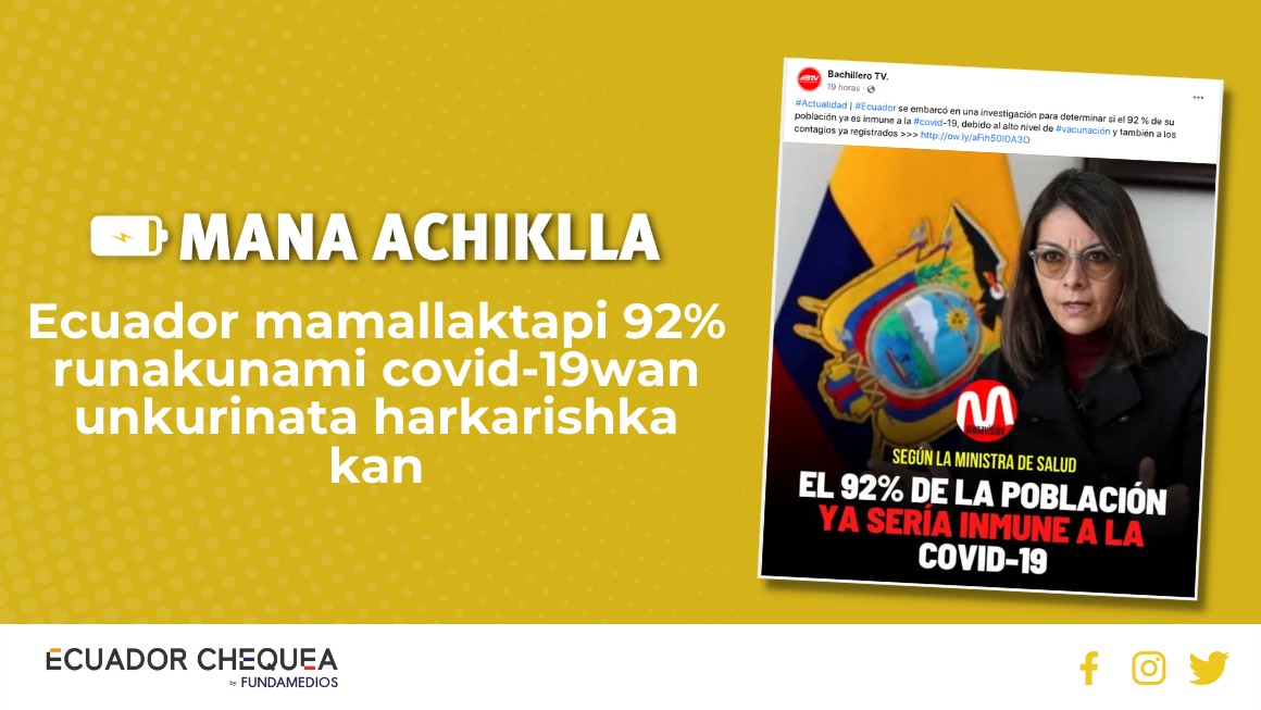 Kay rimaymantami, Bachillerato TV Facebook pankapika Hampi Kamaywasipa pushak, Ximena Garzónka, 92% runakunami covid-19 unkuymanta harkashka kan nishpami shuk willayta llukchirka.