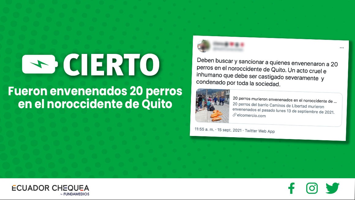 A través de cuentas de Twitter personales se difundió este miércoles 15 de septiembre la información de que en el noroccidente de Quito residentes del sector y moradores encontraron varios perros muertos en las calles del barrio Caminos de Libertad. Sin embargo, no se trataba —al menos no todos— de perros callejeros. Incluso algunos yacían ya sin vida a las puertas de sus casas. La información es cierta.