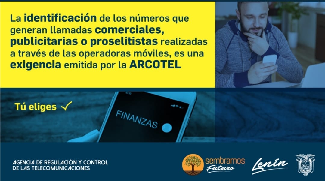 La Agencia de Regulación y Control de las Telecomunicaciones (ARCOTEL) explicó que se trata de la aplicación de la política para la identificación de llamadas que exige a las operadoras del servicio móvil realizar los cambios tecnológicos para que las llamadas asociadas a los sectores de: ventas, finanzas, turismo o proselitismo, puedan ser previamente identificados.