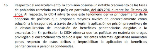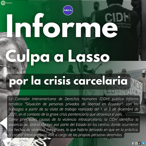 La CIDH presentó un informe sobre la situación de los presos en Ecuador la semana pasada y en su explicación de los factores de la crisis penitenciaria aseguró que una de las causas es el incremento de la población carcelaria en un 469,29% en los últimos 20 años, y no dice que es responsabilidad de la actual gestión de Guillermo Lasso, que lleva 9 meses y 27 días en el poder.