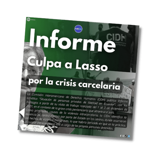 La CIDH presentó un informe sobre la situación de los presos en Ecuador la semana pasada y en su explicación de los factores de la crisis penitenciaria aseguró que una de las causas es el incremento de la población carcelaria en un 469,29% en los últimos 20 años, y no dice que es responsabilidad de la actual gestión de Guillermo Lasso, que lleva 9 meses y 27 días en el poder.