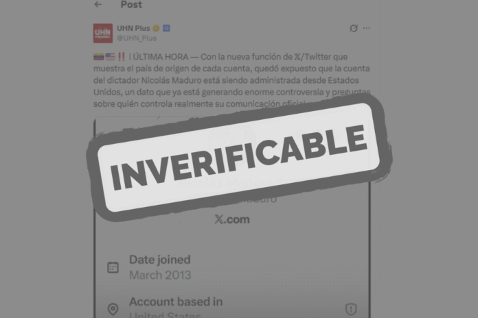 La afirmación de que la cuenta del presidente Nicolás Maduro “opera desde Estados Unidos” es inverificable.