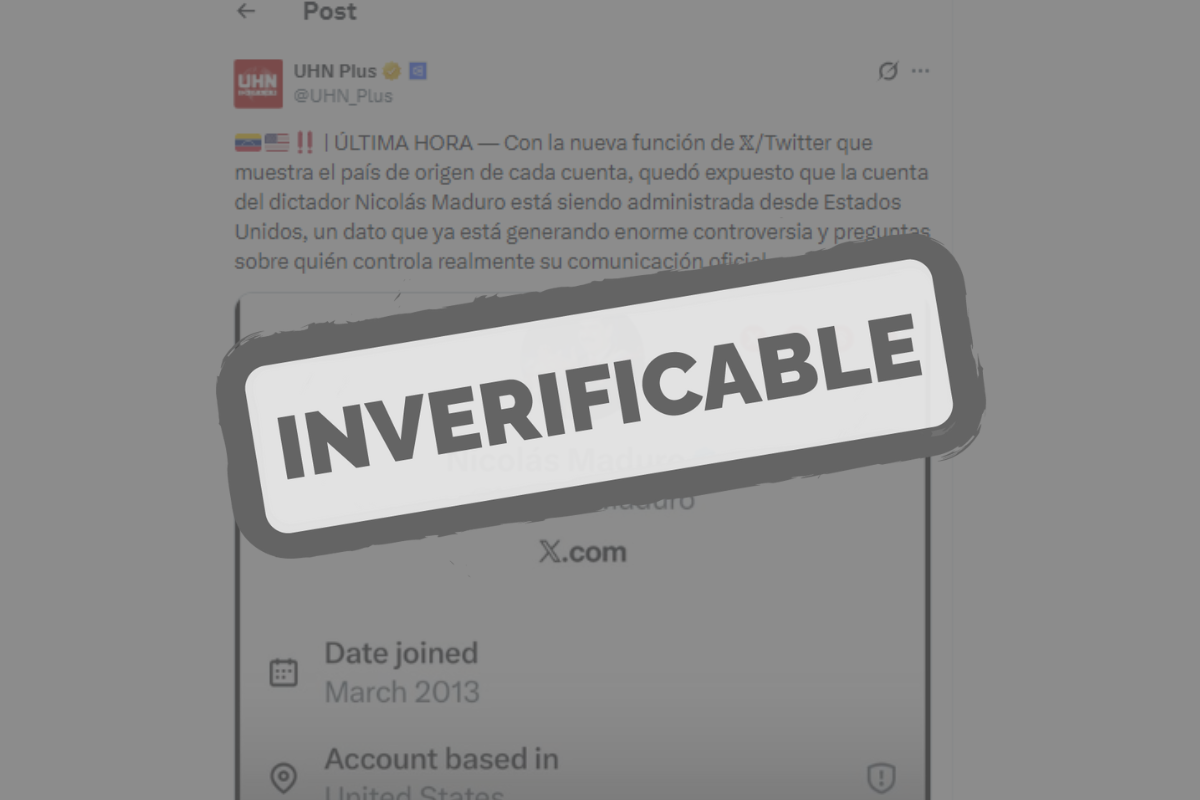 Lo omitido: los usuarios que difunden el contenido no mencionan que X fue bloqueada en Venezuela en agosto de 2024, lo que incrementaría el uso de VPN por parte de ciudadanos, instituciones, periodistas e incluso cuentas oficiales que deseen administrar perfiles desde dentro o fuera del país.