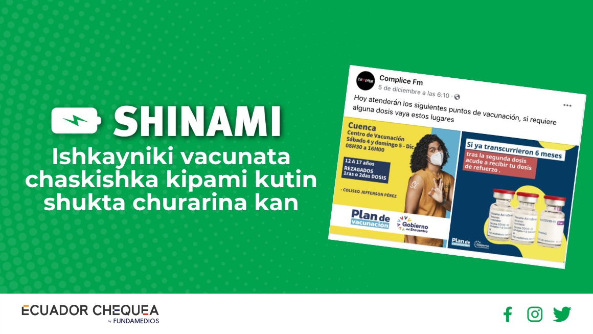 Facebook pankapimi shuk willayta churarka ishkayniki vacuna churashka kakpi sukta killa kipami sinchiyachinkapak vacunata churarina kan nishpa. Chay willayka shinami kan. Hampi kamaywasipa psuhak, Ximena Garzón willachirkami.