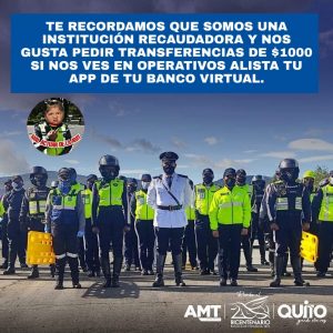 En la imagen de la publicación se observan unos agentes de tránsito. Además, la fotografía contiene los logos oficiales de esta entidad perteneciente al Municipio de Quito.