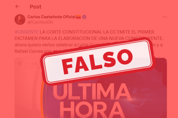 Una publicación viral en X intenta instalar la idea de que la Corte Constitucional ya inició el proceso para «elaborar» una nueva Asamblea Constituyente, presentándolo como un hecho consumado y ocultando que el máximo tribunal no tiene competencias para redactar ni convocar directamente este tipo de procesos.
