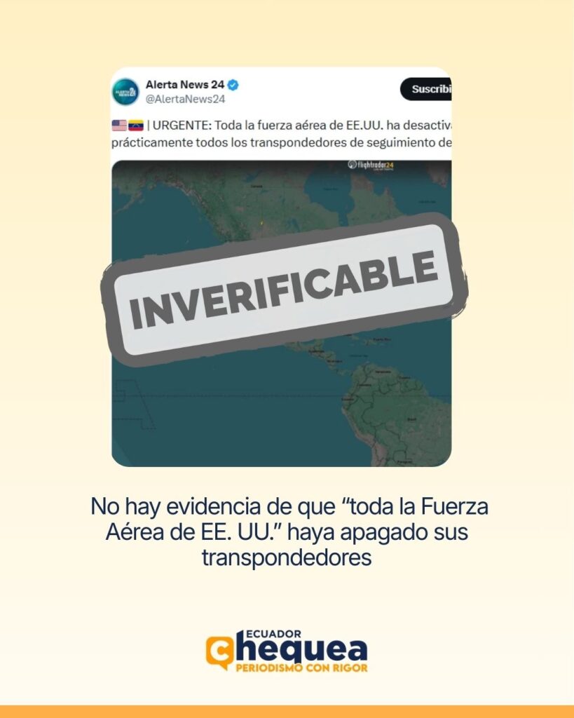 Sí existen reportes de aeronaves militares con transpondedores apagados en contextos puntuales, pero eso no respalda el alcance (“toda la fuerza aérea”) del post viral. Por ejemplo, medios han documentado incidentes/quejas de aviación civil por operaciones cerca de Venezuela con transpondedor apagado. Eso describe eventos localizados, no una desactivación generalizada de la USAF.