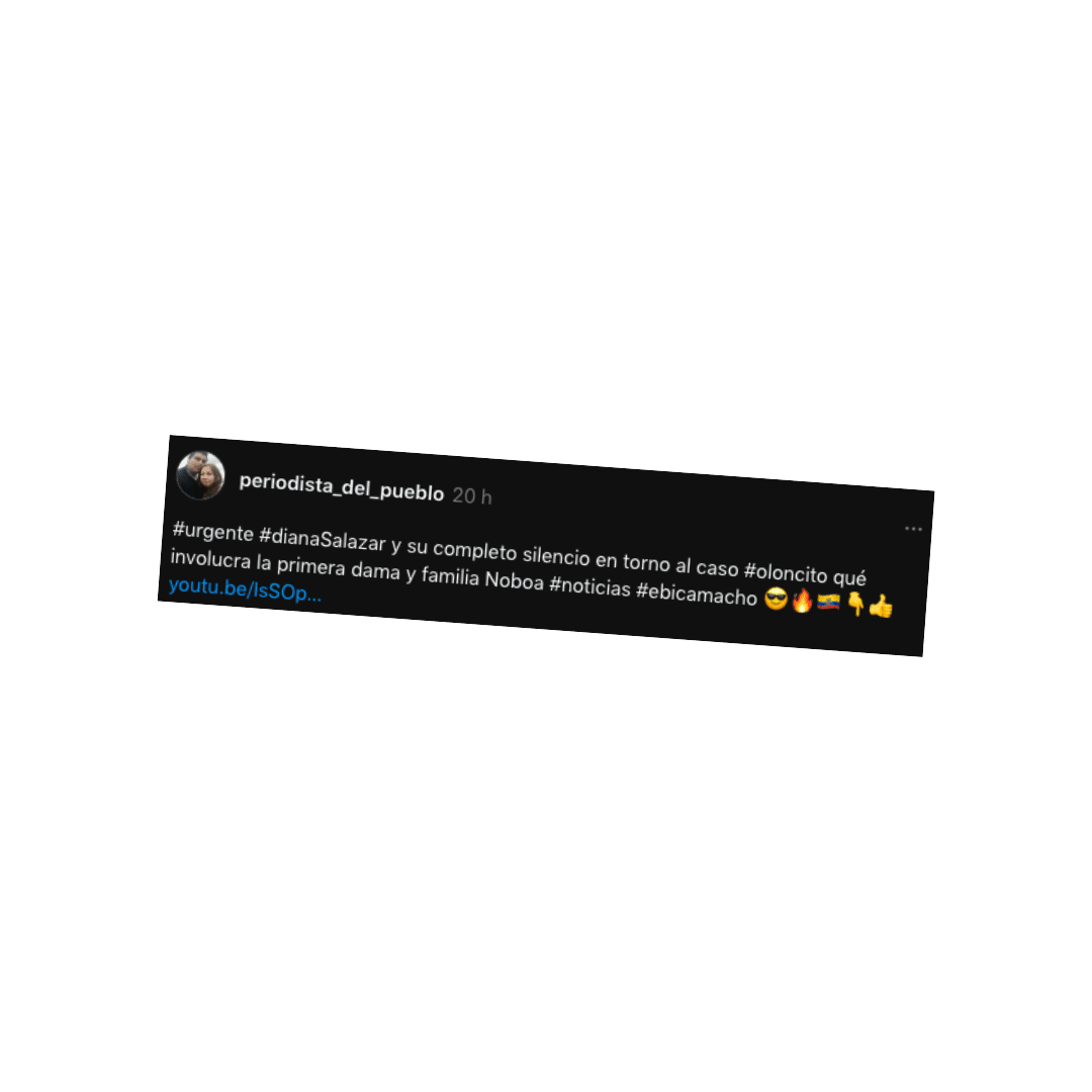 En medio de esta polémica se propagan por redes sociales numerosas publicaciones de desinformación que aluden a supuestas acciones u omisiones de actores políticos e incluso judiciales. Por ejemplo, en Threads se publicó un post que asegura que la fiscal Diana Salazar guarda silencio sobre el “caso Oloncito”.