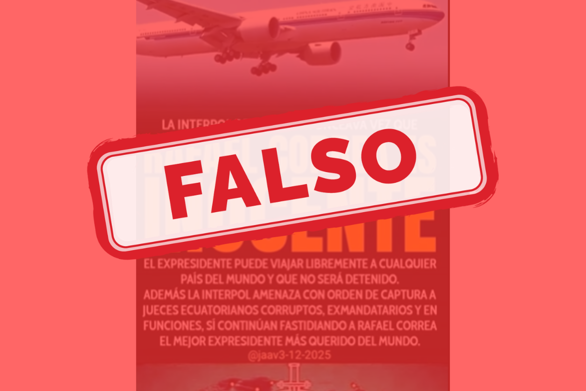 La afirmación de que Interpol declaró inocente a Rafael Correa es falsa. Interpol no tiene facultades para dictar sentencias ni emitir pronunciamientos de culpabilidad o inocencia. Su rol se limita a coordinar la cooperación policial internacional y evaluar criterios técnicos para activar notificaciones rojas.