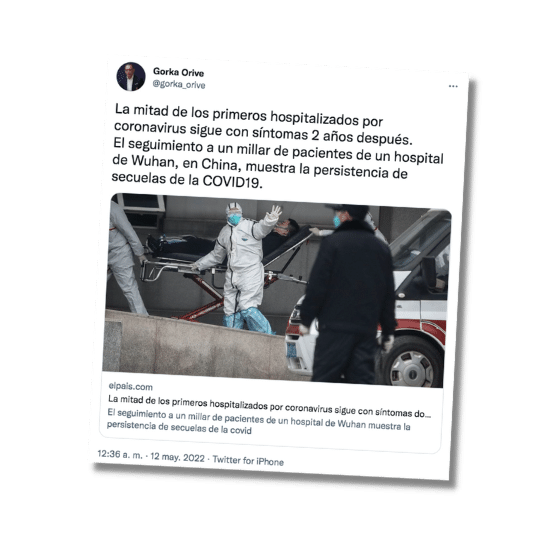 En Twitter un contenido afirma que la mitad de los primeros hospitalizados por coronavirus sigue con síntomas, dos años después. Y que el seguimiento a un millar de pacientes de un hospital de Wuhan, en China, muestra la persistencia de secuelas. La información es cierta.