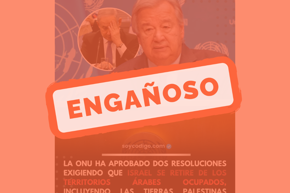 - El contenido viral mezcla indebidamente el Golán sirio con territorios palestinos, lo que altera el significado de la resolución.