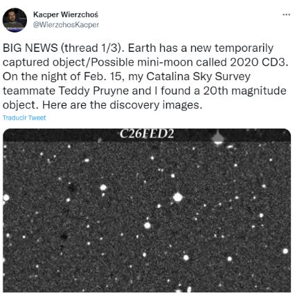 Los investigadores Kacper Wierzchos y Theodore Pruyne fueron los que descubrieron a la “miniluna”, ellos son especialistas de Catalina Sky Survey. Este es un proyecto que fue financiado por la NASA. Esto se dio en el Laboratorio Lunar y Planetario de la Universidad de Arizona.
