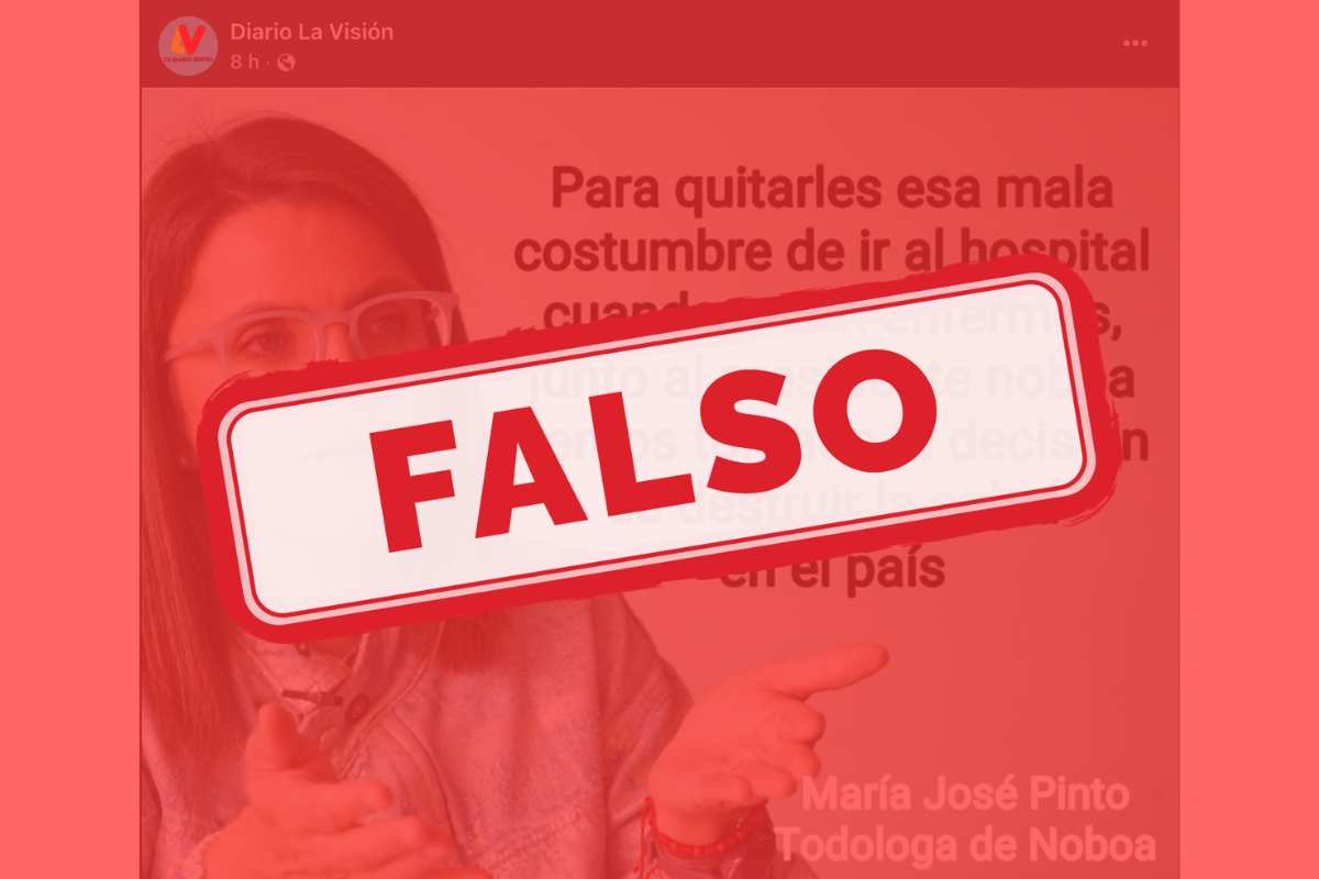 En redes sociales, particularmente en el grupo “Revolución Ciudadana Oficial”, circula una imagen con una supuesta cita atribuida a la vicepresidenta María José Pinto. En el contenido se le adjudica una declaración en la que afirma que el Gobierno habría decidido “destruir la salud en el país”.