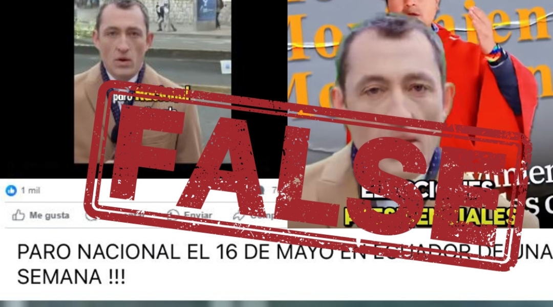 Ecuador Chequea ha identificado que desde mediados de abril circulan en redes sociales mensajes falsos sobre un supuesto paro. Para ello, han usado imágenes manipuladas y audios realizados con inteligencia artificial.