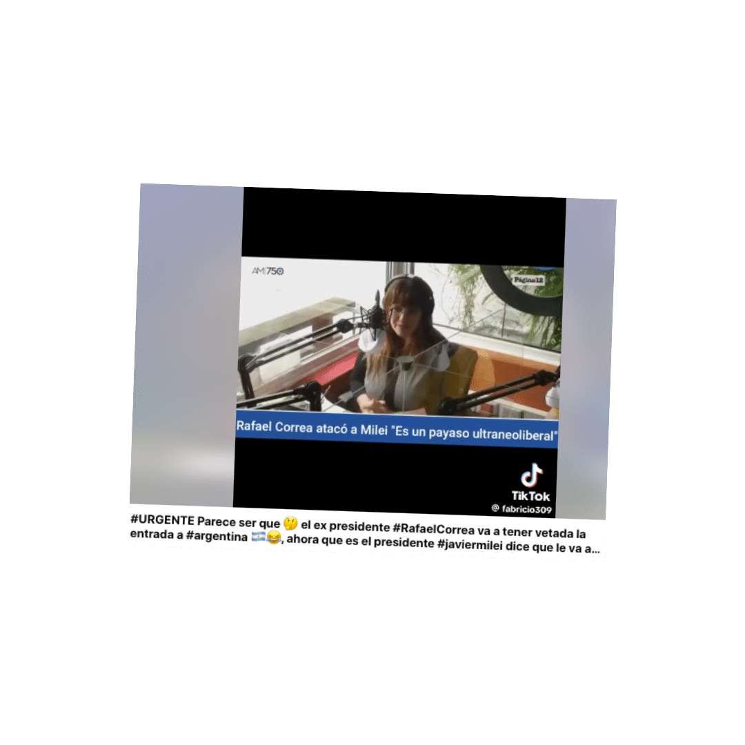 Con estas declaraciones termina el video, insinuando que Milei las habría dado en respuesta a lo dicho por Correa. Además, en la descripción del post se lee: “Parece ser que el expresidente Rafael Correa va a tener vetada la entrada a Argentina, ahora que es el presidente Javier Milei. Dice que le va a pegar un baile morboso, que no va a saber dónde está parado”.