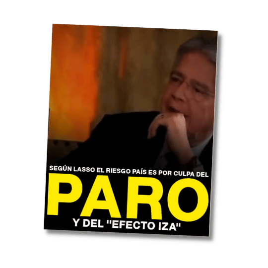 En la entrevista que el presidente mantuvo con Carlos Vera anteayer, Lasso declaró textualmente: “el Riesgo País se encontraba antes del paro en 800 puntos. Comenzó el paro el 13 de junio y se disparó a 1600”. Asimismo, al impacto que supuestamente causó el paro Lasso le llamó el “efecto Iza”, en referencia a Leonidas Iza, presidente de la Confederación de Nacionalidades Indígenas del Ecuador (Conaie), quien fue uno de los dirigentes que convocó y lideró la paralización nacional.