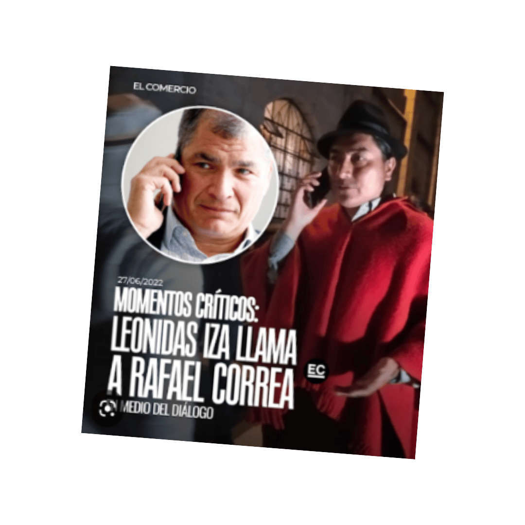 La desinformación en campaña electoral se nutre también de post falsos pasados. Al final, en las redes sociales no hay límites. En una publicación de Facebook se usa la captura de la verificación que Ecuador Chequea hizo de un post en junio pasado, pero la manipula. En ese post, que usa distintivos de Diario El Comercio, se asegura que Leonidas Iza, presidente de la Confederación de Nacionalidades Indígenas del Ecuador (Conaie), llamó al expresidente de la República Rafael Correa durante el diálogo que mantuvo el sector indígena con el Gobierno Central, en el contexto del paro nacional. La información es falsa.