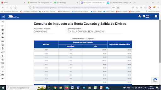 En la página del Servicio de Rentas Internas (SRI) se puede consultar el Impuesto a la Renta causado y el Impuesto a la Salida de Divisas (ISD).