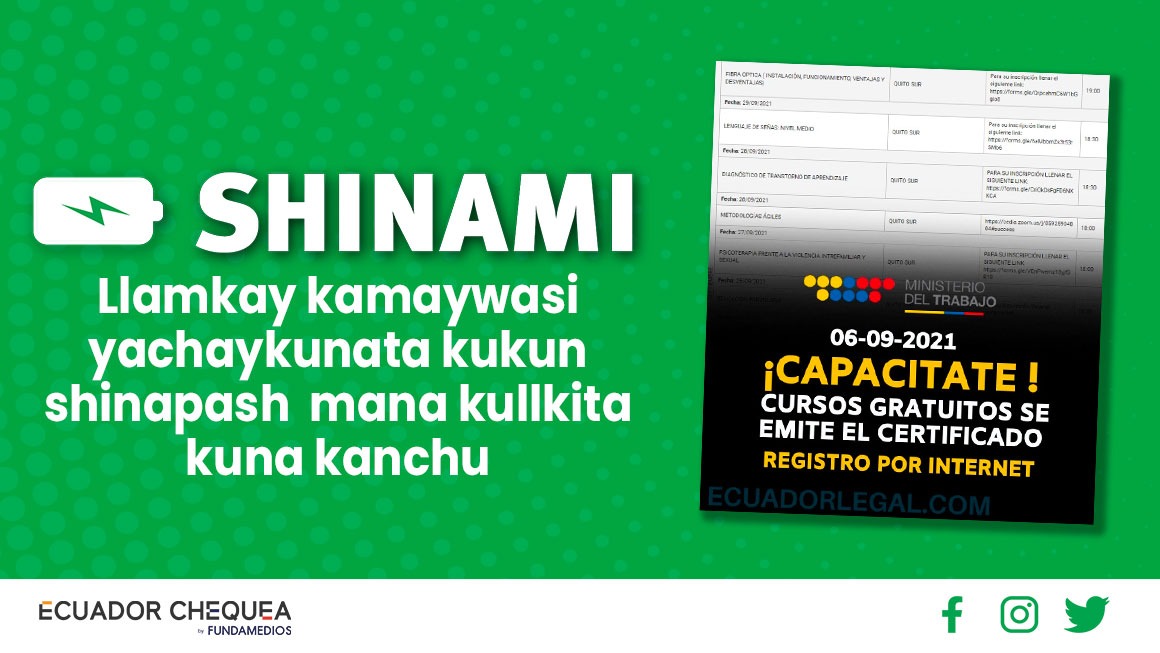 6 kuski killamanta Ecuador Legal Facebook pankapimi Llamkay kamaywasipa shutipimi shuk kayachita yachakunkapak ruranakurka, shinallatak kamaywasi yachaykunamanta pankata kunka nishpa. Chay yachaykunamantaka shinami kan, shinapash chay pankaka shina willaykunata yallichitalla yallichin.