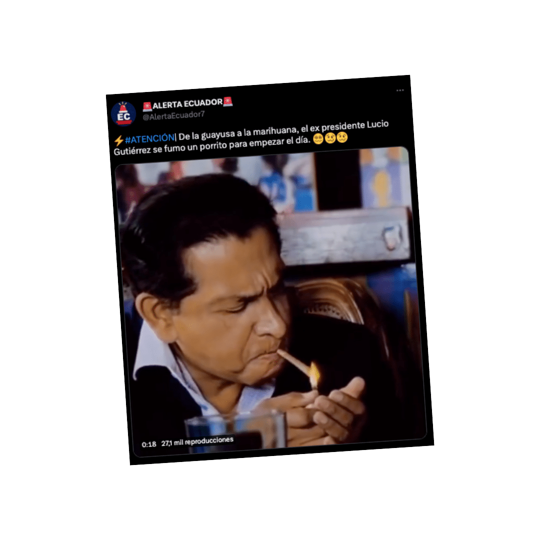 En una publicación de Twitter se asegura que el expresidente Lucio Gutiérrez fumó un cigarrillo de marihuana para empezar el día. Esta información es engañosa. El exmandatario aclaró en sus redes sociales que el cigarro contiene CBD, una sustancia no psicoactiva del cannabis.
