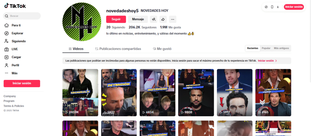 El contenido se difundió principalmente en TikTok, lo hizo el usuario novedadeshoy5 , donde obtuvo múltiples réplicas en cuentas que suelen publicar rumores sobre celebridades sin evidencias verificables.