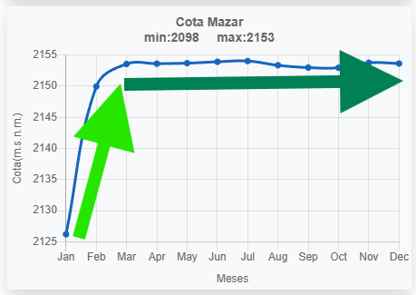 - Marzo: 2153,56 msnm, 0,56 m por encima